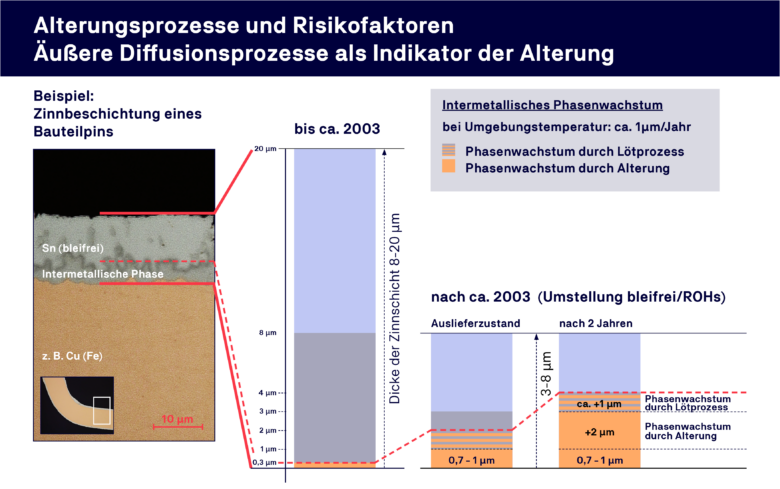 Kritische Materialveränderungen und Alterungsprozesse elektronischer Komponenten